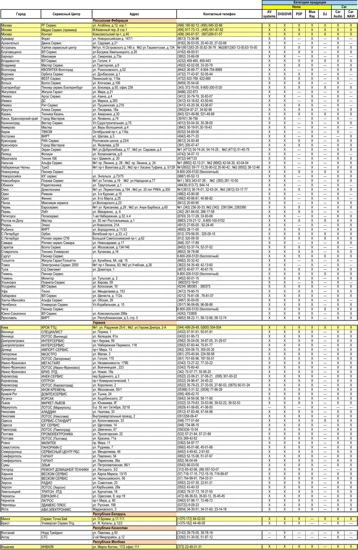 авторизованных сервисных центров по России, Украине, республик Беларусь и Казахстан